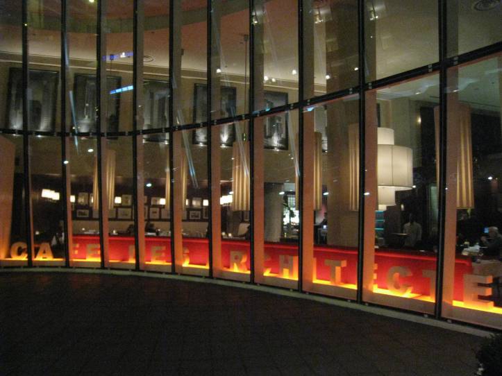 I had a long day but also had cause to celebrate, so when Frances text me to grab a drink, I couldn’t resist. We decided to go to Le Bar at the Sofitel Hotel, which I’ve been to a few times now. It’s the perfect place for “just one drink” – and you really only have one drink because the bar just doesn’t seem to inspire excess.