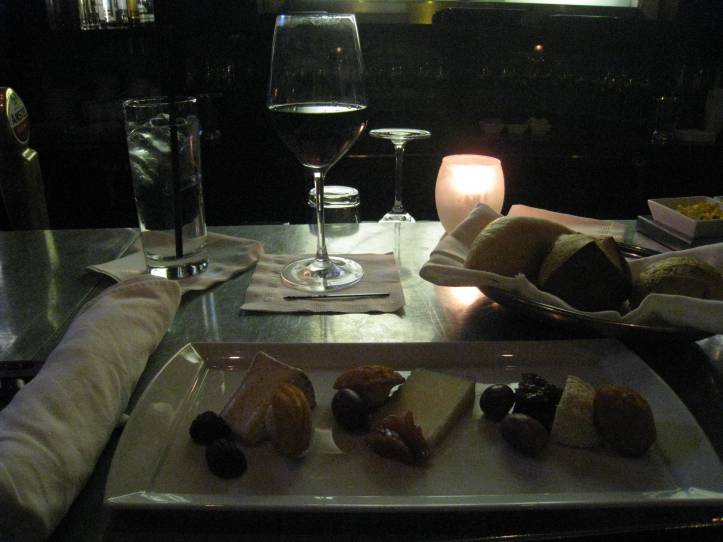I love how they hook you up with a little platter of snacks as soon as you sit down, and the lights in the ceiling feel like twinkling stars. And I couldn’t resist a cheese flight – camembert, manchego & crottin (which was my favorite of the night). Cheers!