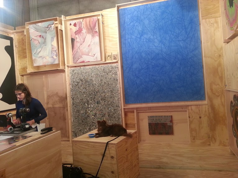 - The Hole had the coolest exhibition space, with the floor and walls all made up of wooden crates. Plus, the most adorable, well-behaved fluffy brown dog lounging on one of the crates.